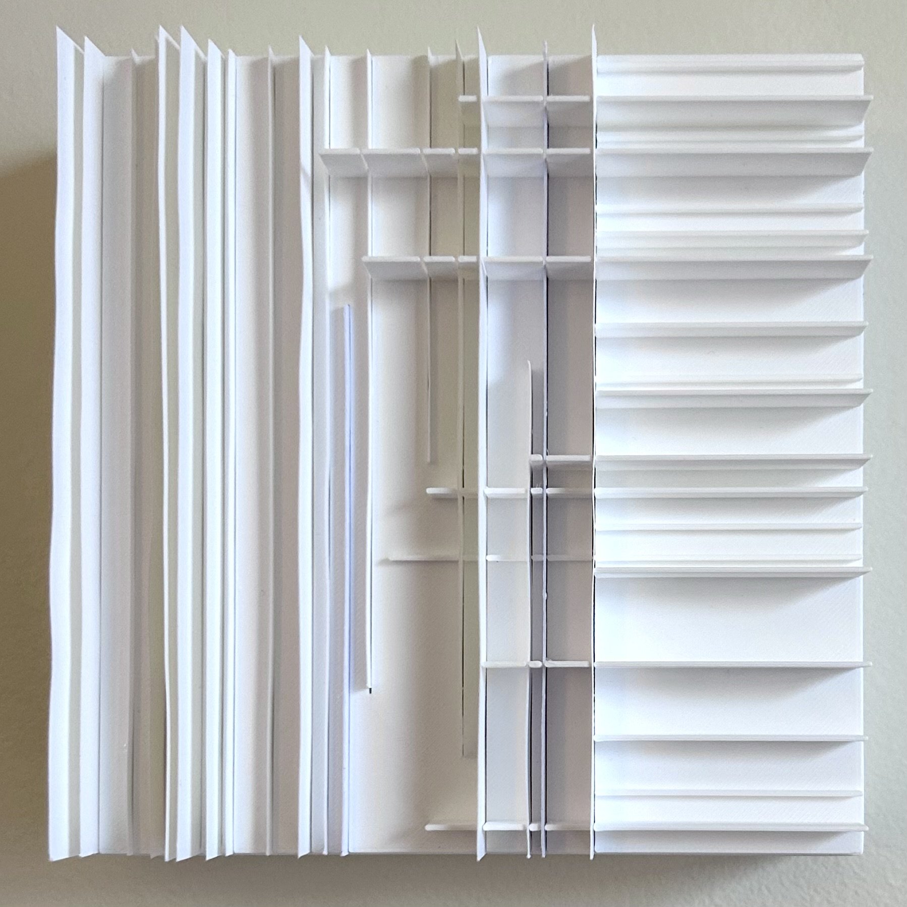 Florence Chen’s work unfolds across evolving series that examine moments of imbalance and near-alignment within ordinary scenes. Using layered paper and constructed form, she builds situations in which difference remains visible yet held in place.